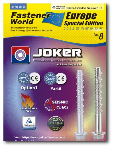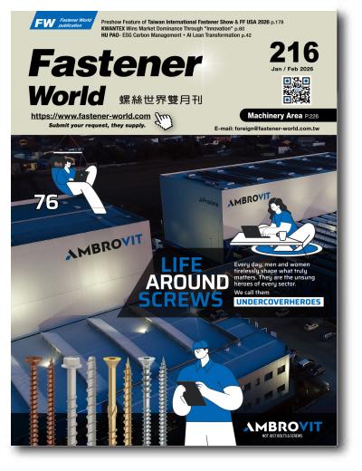 The all-in-one publication covering suppliers info for semi-finished/finished fastening products, machinery, materials, secondary processing, plating, coating, surface treatment, heat treatment, testing & sorting, warehouse & logistics service. 200+ superior suppliers are included per issue. With one issue in hand, you can get suppliers info, sourcing approaches, industry news, technical articles, market analyses, and exhibition previews/reviews. 15,000 copies per issue are mailed to 200+ countries and regions and over 50% will hit the desks of critical manufacturers, importers, exporters and distributors in Europe and N. America. The Nov. issue is Buyers’ Guide of the Year.