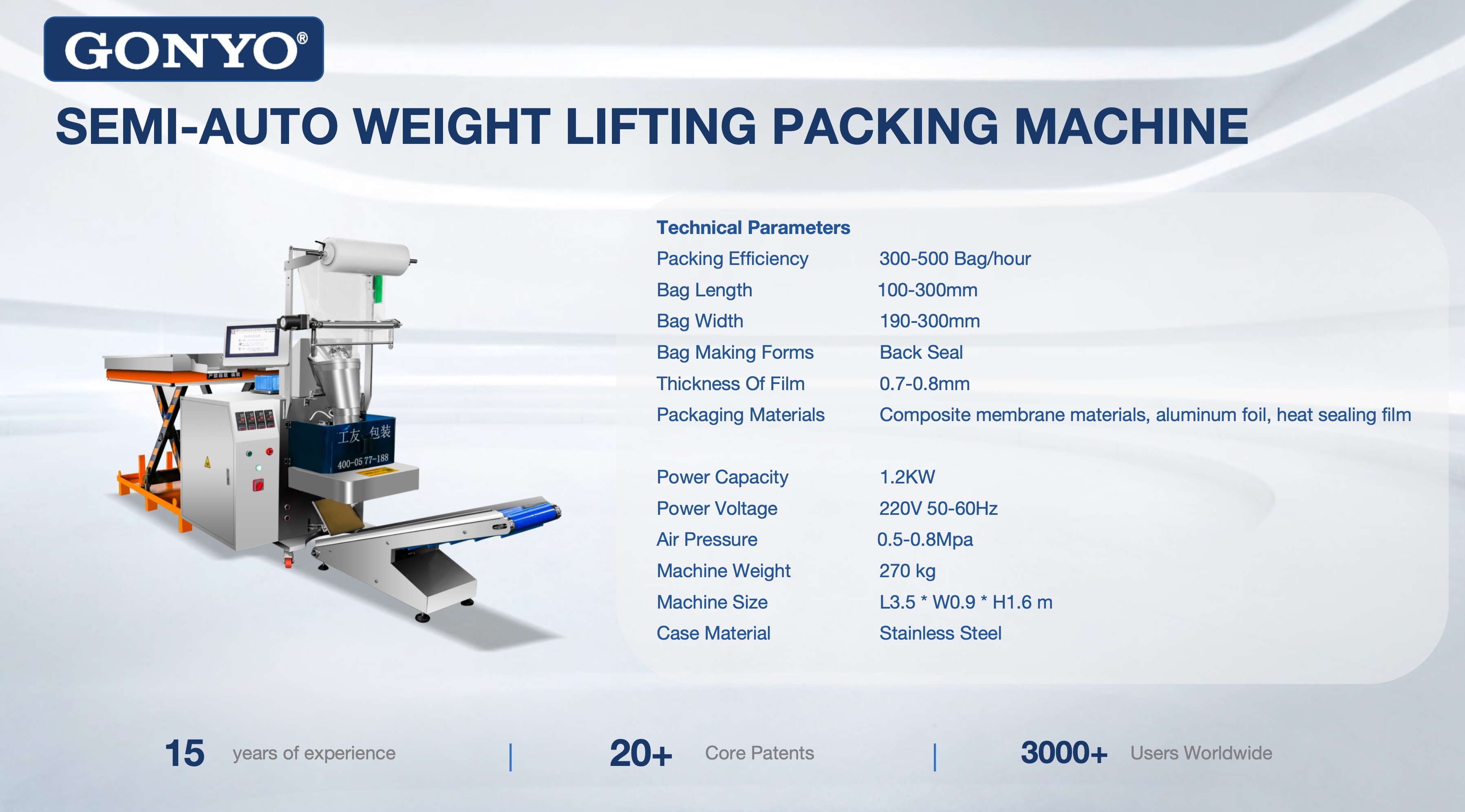 SEMI-AUTO WEIGHT LIFTING PACKING MACHINE GONYO