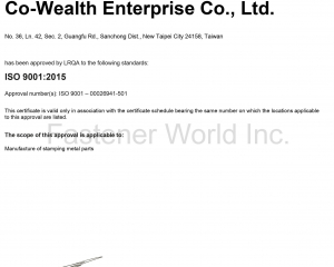 Co-Wealth Enterprise Co., Ltd. was founded in 1990. We provide most professional services to our different customers based on their variety needs. Adapting to the dynamic market, Co-Wealth cope well with all kind customized demands. We value our employee training most to enhance our professional experiences and enrich our talents.