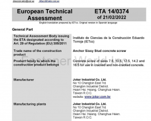 Joker fastener, a screw anchor fastener and fixing manufacturer has been specialized in building anchor into 38 years and more than 90% export to Europe. In 2014, we were the first Asia concrete screw manufacturer been approved by the ETA Option 1 certificate and we will get the seismic C1/C2, A4 stainless concrete screws and more different head and drill diameter sizes for many application in Oct. 2021. Any fixing product or ideas are always welcome to discuss with us, Joker are good at new product develop, especially the technical in stamping, welding, cold-forming, threading and also the zinc die casting, find a manufacturer to develop your idea new products, Joker fastener will be your best partner.
