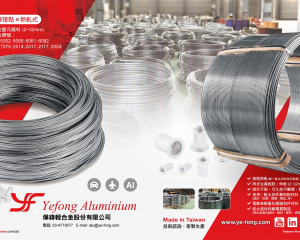 Ye Fong Aluminum Industrial Ltd. is the aluminum alloy manufacturer/mill in TAIWAN. Ye Fong has established indirect/direct extrusion pressers, and integrated with straightening, cold drawing lines and heat treating processes by ourselves .We provides worldwide customers with full customized product development, technical consulting and technical service. We produce aluminum alloy materials including Precision Extrusion & Cold drawn seamless TUBE, BAR, PROFILE, PLATE and HOT ROLLED WIRE ROD to global markets including high-end Aerospace, Military & Defense , Marine Shipbuilding, Automotive, High Precision Machining, Medical, and Commercial ..etc.