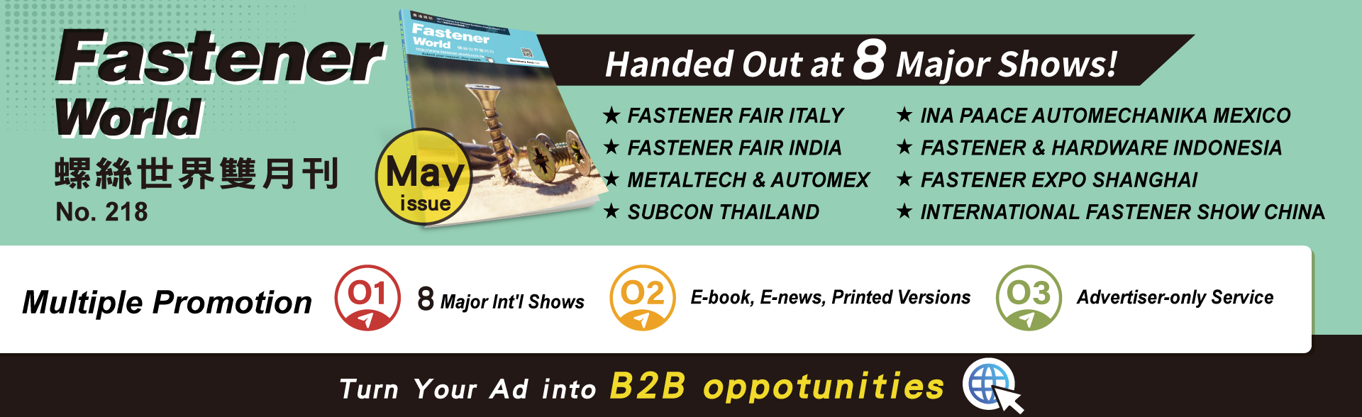 Fastener World's booth no. is to be determined.