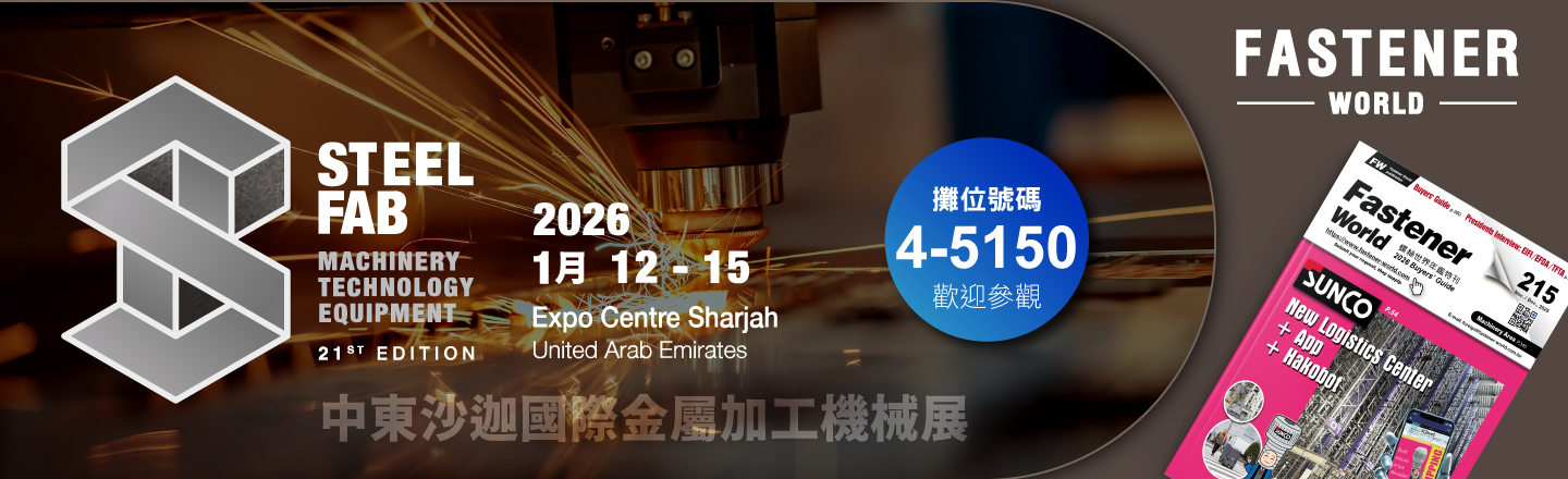 針對扣件、五金、工業零組件和相關原料/金屬加工技術產業所舉辦的專業國際展覽會-中東沙迦扣件展今年01月8至11號在阿聯酋的沙迦國際展覽中心盛大舉辦,該展也是著名SteelFab國際機械技術設備展旗下的主題子展。