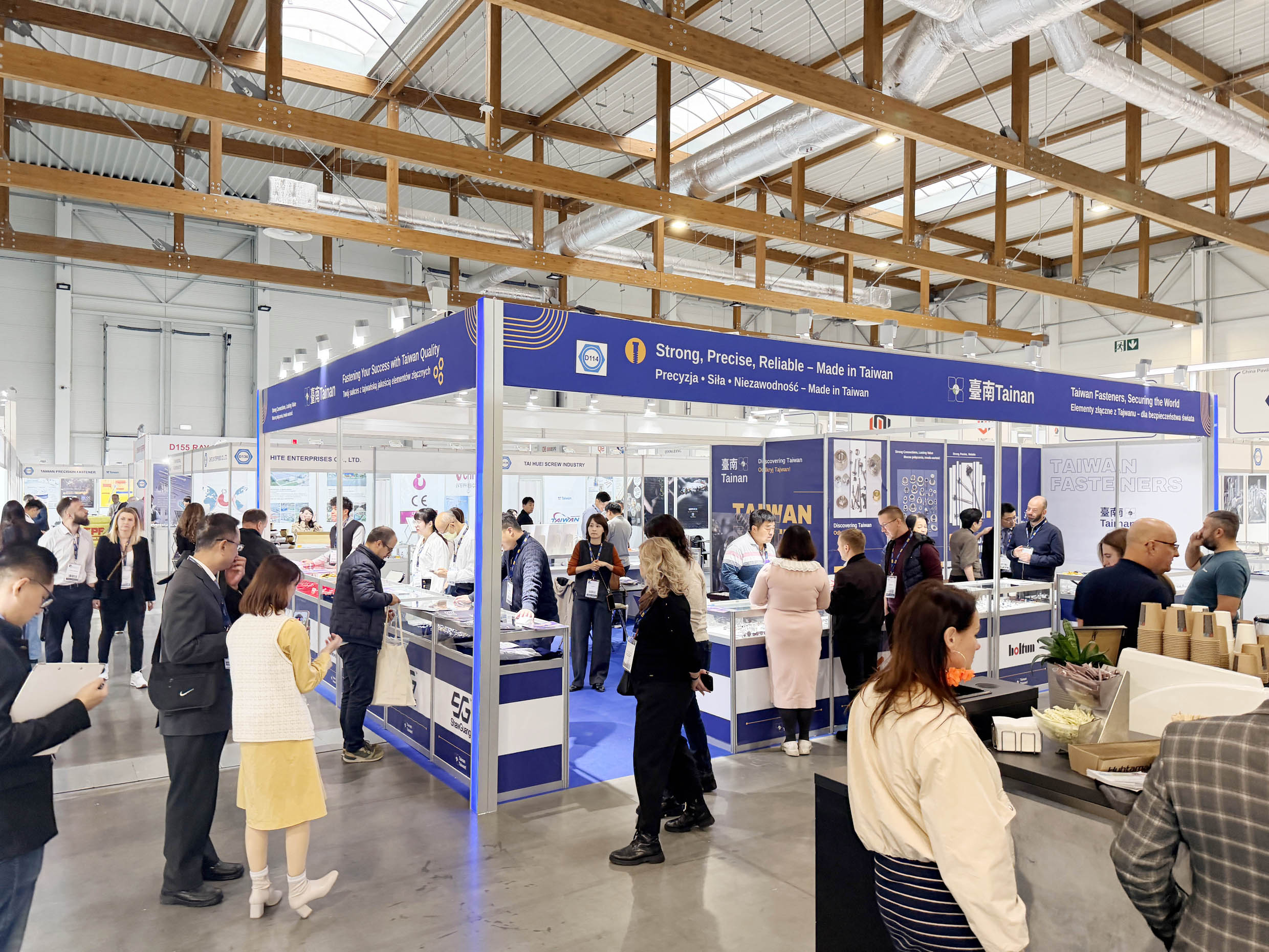 Fastener World Inc., being one of the focal points for visitors at this exhibition and serving as the sole authorized sales agent in Taiwan for the show organizer, led dozens of high-quality Taiwanese manufacturers in a group to exhibit, aiming to further explore and capture business opportunities in Poland and the surrounding Central and Eastern European markets through face-to-face interactions with local industries and buyers. These exhibitors were Ray Fu, De Hui, Mao Chuan, Boss Precision, Tai Huei, Yi Xing, Zhishan Xing, Tsunami Precision Mold, Fratom Fastech, Industrial Technology Research Institute (ITRI), Taiwan Industrial Fasteners Institute (TIFI), Joker, Hoplite, Feng Yi, L & W, Chite, Vertex, Biing Feng, MAC Precision, Chi Ning, Taiwan Precision Fastener, Ko Ying, Yeswin, Shaw Guang, Fastener Jamher Taiwan, Boltun/QST, and Apex.