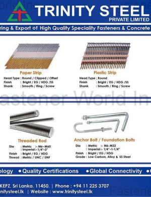 Fastener Thailand exhibit profile are focused on Industrial Fasteners and Fixings, Construction Fixings, Assembly and Installation Systems, Fastener Manufacturing Technology, Storage, Distribution, Factory Equipment for Automotive, Aerospace, Electronic and Electrical Goods, Construction, General Engineering, HVAC, Air Conditioning, Energy and Power Generation, Metal Products, Furniture Manufacturing, Sanitary Ware and Plumbing, Installation Development, etc.