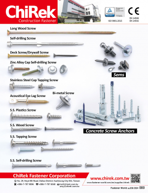 鋼結構帽與建築用小螺絲。歷經三十餘年不斷創新與研發,對螺絲的製造已累積相當的經驗與技術。為配合客戶的特殊規格,錡瑞更提供良好的...