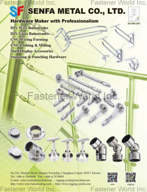 份有限公司,於西元1987年創立,位於彰化縣花壇鄉,紳發公司專注於專業DIY鋼索五金製造商,各種五金沖壓製品、家用五金、建築五金、建築五金、裝潢五金、室內設計…等等,紳發公司主要以不銹鋼鋼索配件、不銹鋼玻璃夾、緊固件、螺絲Screws、U型螺栓、掛...