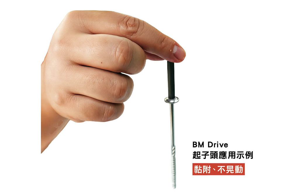 吉瞬將於今年高雄國際扣件展展示三項專利新品。首先是「BM Drive起子頭」,採梅花形頭部設計,以及它的升級版「BM Drive Plus起子頭」,新增突出定位部位,兩者皆透過單手握持即可實現「黏附固定、不晃動」,適用多種環境,大幅提升操作便利性;第三是「Self-drilling Dowel自鑽銷」,專門固定夾在兩個木材間的鐵板,無需預鑽孔即可攻鑽木頭與鐵板,一次穿透固定。吉瞬邀請訪客現場觀賞演示並親身體驗。此外,吉瞬正整合旗下起子頭產品,目標打造「一支起子頭對應多種螺絲外徑」的通用方案,解決使用者痛點。