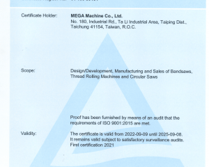 鎂佳機械工業股份有限公司(MEGA MACHINE CO., LTD.),創立於西元1980年,成立以全自動油壓帶鋸機、NC圓鋸機、倒角機、滾牙機、NC滾齒機、螺紋研磨機之研發製造及銷售服務客戶的專業廠商。