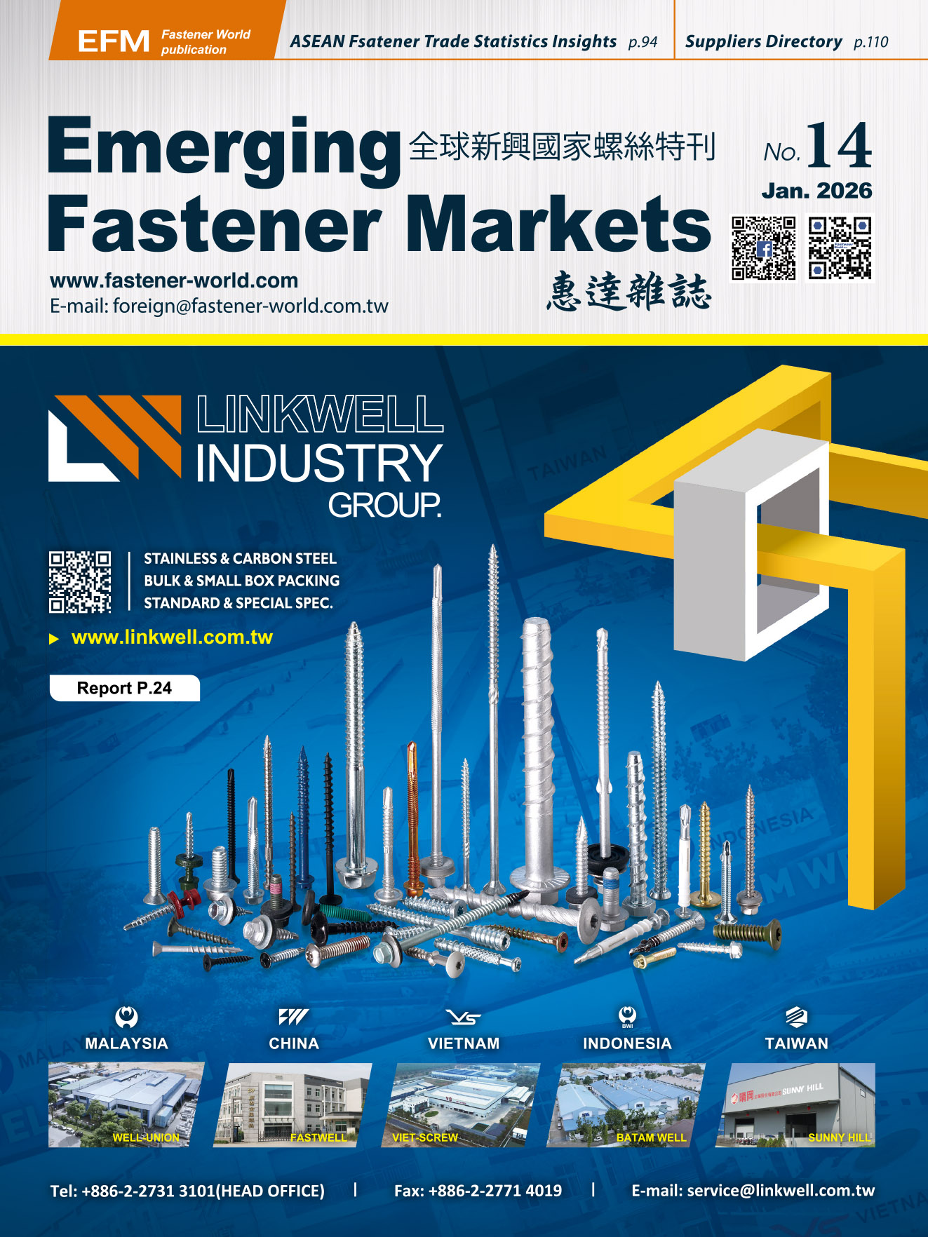 Established in 1987, Fastener World has been the supporting force behind Taiwan's fastener industry for 37 years. Since the era before the Internet was popularized, we had been working together with Taiwanese suppliers to develop the global market, so that Taiwan's premium fasteners could continue to shine bright internationally. Nowadays, we are not only the industry’s most respected marketing media in the world, but also the preferred brand for worldwide fastener suppliers to go global.