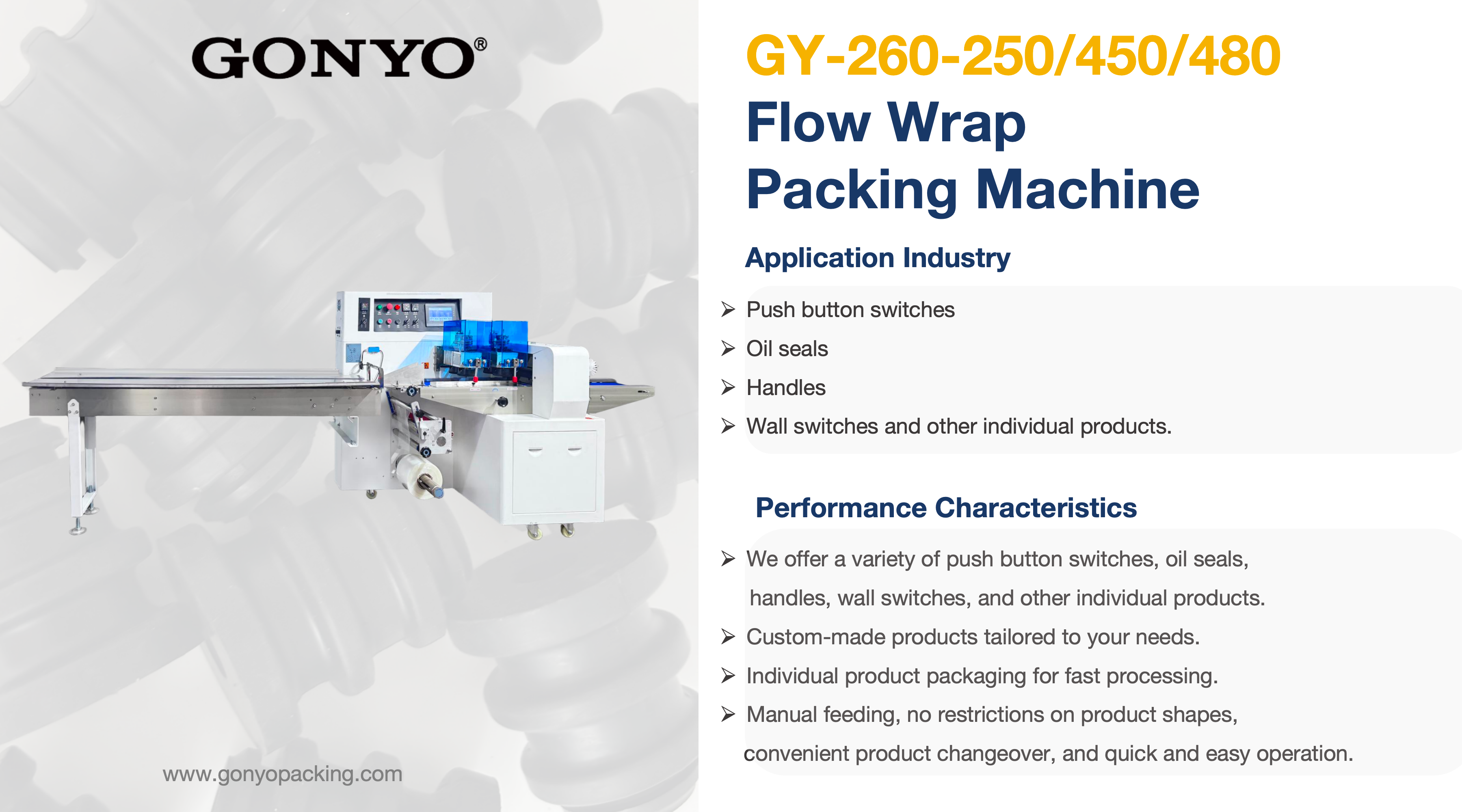 GONYO GY-260-250/450/480 Flow Wrap Packing Machine