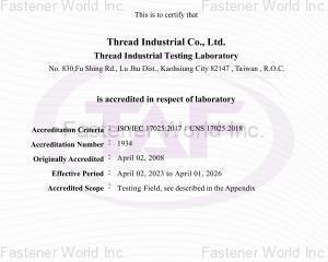 >Business Philosophy:Sincerity, Dependability, Innovation>Business Principles:Continuous operation, pursue excellenceTo encourage the entire fellow workers in accordance with the sincere spirit to manufacture products which meet customers` demand and quality. Simultaneously, to provide customers with the fair price, rapid lead-time and kindness service. On the other hand, to unify the company`s resources to reach the enterprise`s goal and allow them making profits continuously which present the profit to customers, employees, shareholders, suppliers and relevant benefit parties. Lastly, in accordance with the consistent logics and dependable spirit to continue improving and seeking excellence in the future to make the enterprise operating permanently.Thread Is Challenging Limit.