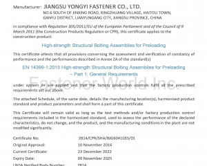 Jiangsu Yongyi Fastener Co., Ltd. is a professional manufacturer of high-strength structural bolts and high-strength big bolts.