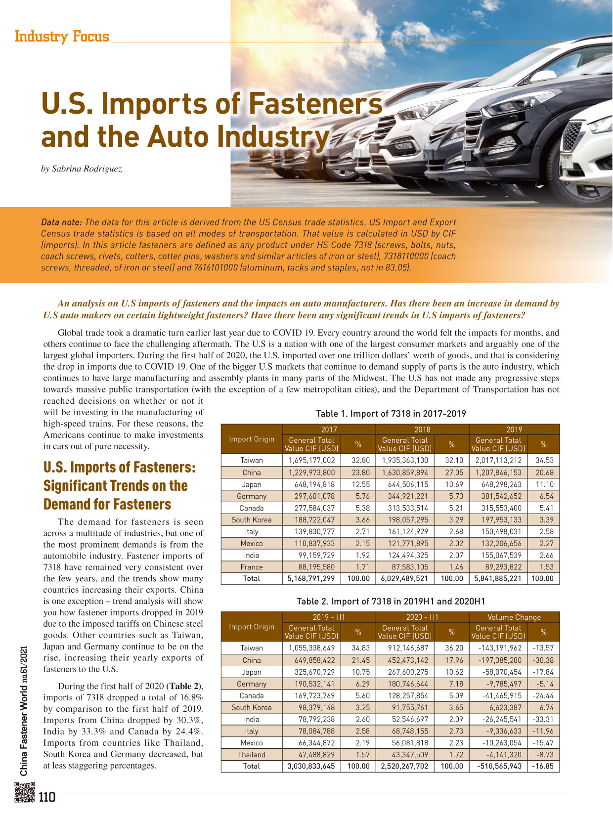 U.S. Imports of Fasteners and the Auto Industry ... Sabrina Rodriguez