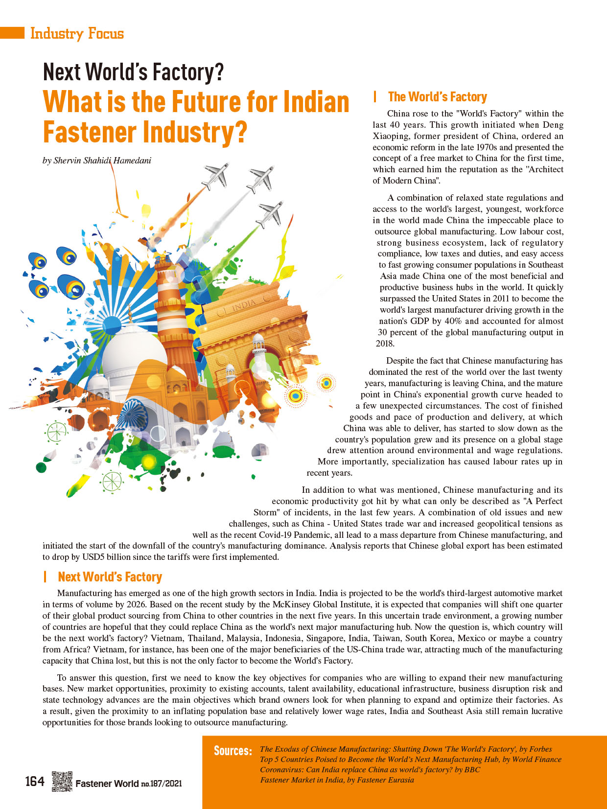 Next World’s Factory? What is the Future for Indian Fastener Industry? ... Shervin Shahidi Hamedani