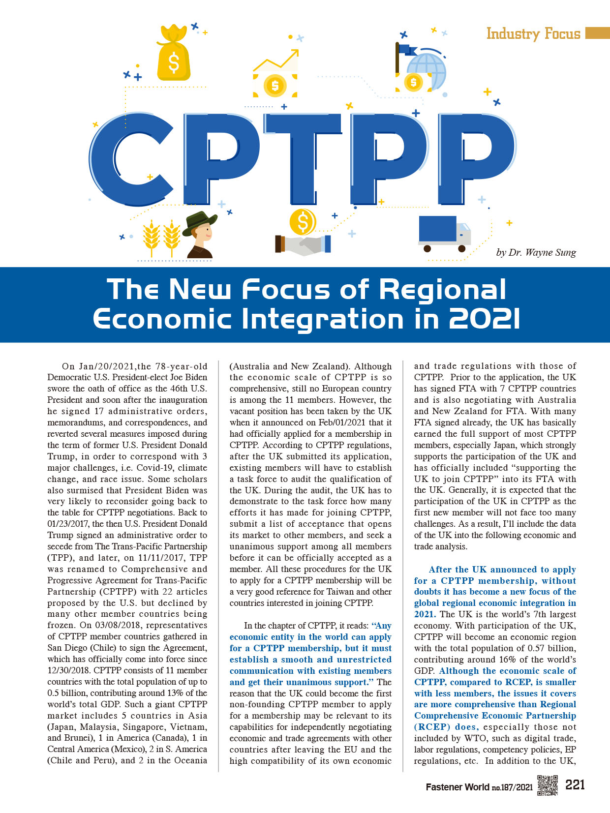 CPTPP –The New Focus of Regional Economic Integration in 2021 ... Dr. Wayne Sung