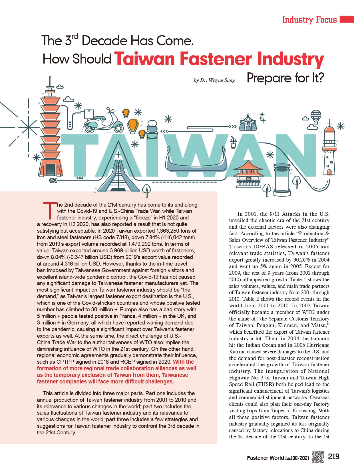 The 3rd Decade has Come. How Should Taiwan Fastener Industry Prepare for it? ... Dr. Wayne Sung