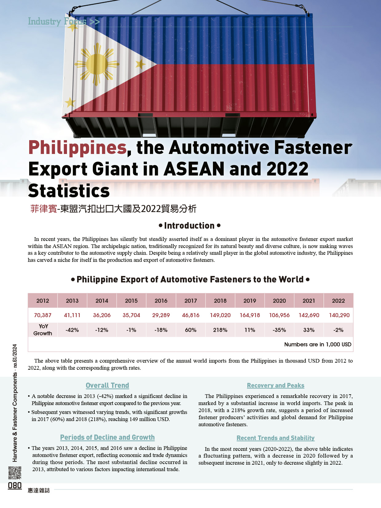 Philippines, the Automotive Fastener Export Giant in ASEAN and 2022 Statistics ... Behrooz Lotfian