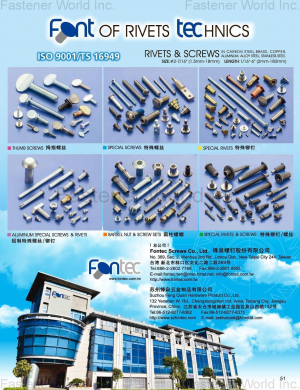 蘇州鋒泉五金製品有限公司成立於2001年,擁有100組生產設備,擁有多功位元冷墩生產設備,如二模四,三模三及三模六沖等專業生...