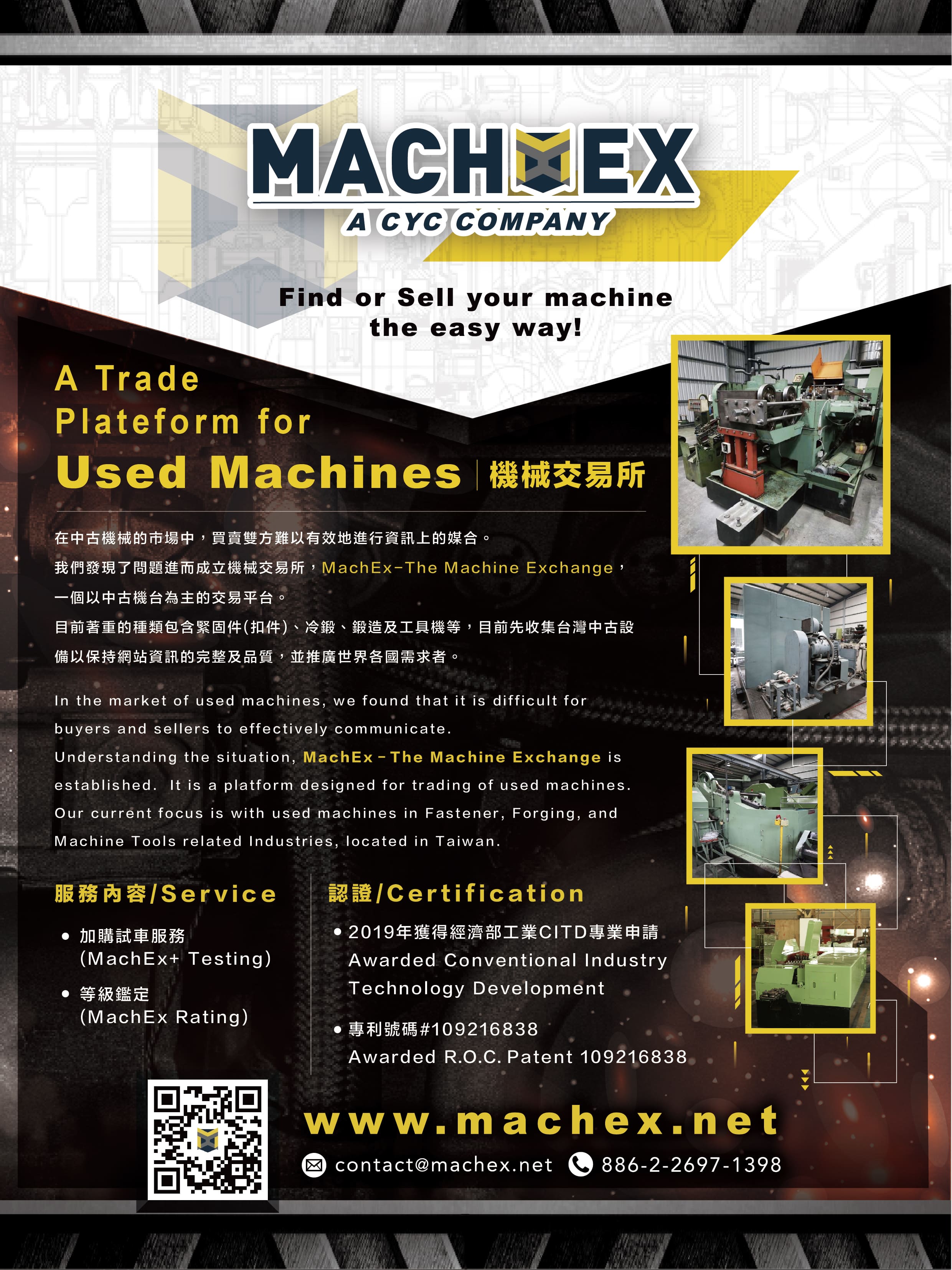 MachEx is a Used Machine Exchange Platform. The platform is founded in Taipei, Taiwan by Mr. Ray Hsieh in 2019. Currently MachEx is a subsidiary brand under Chum Yuan Co., Ltd. (CYC).